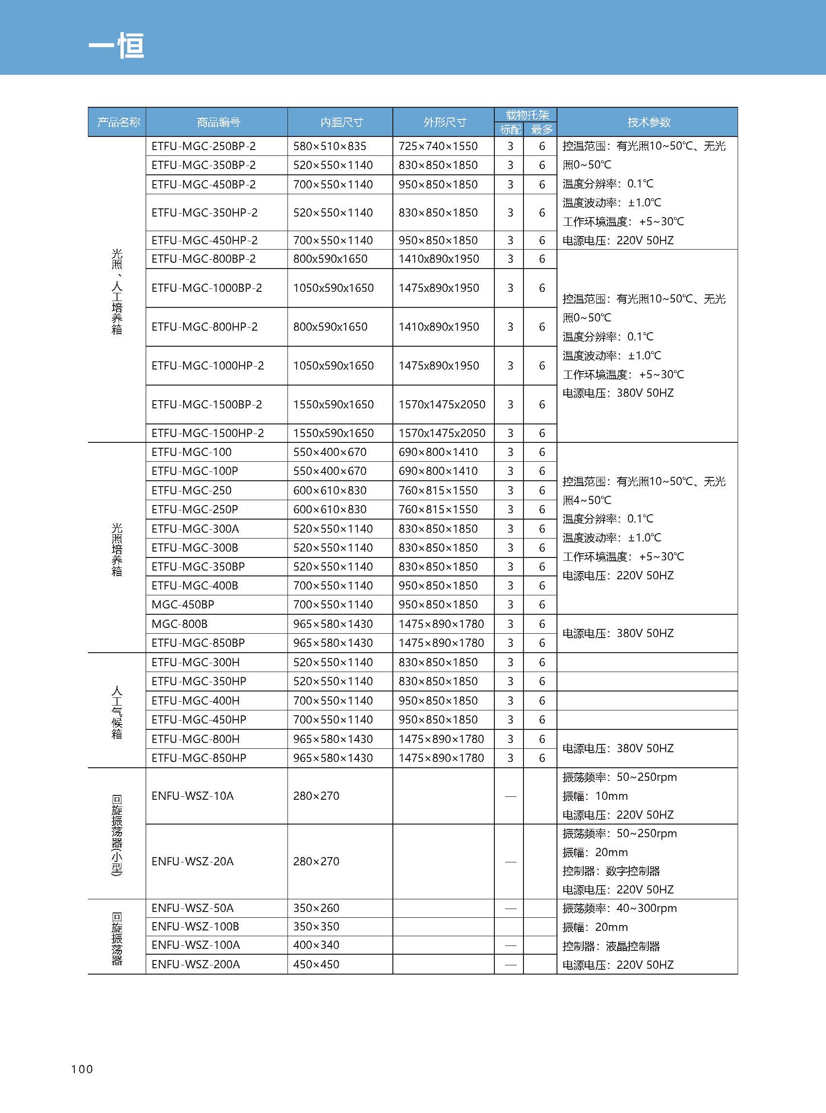 容积:450L ,控温范围:无光照:4-50℃ 有光照:10-50℃,温度分辨率:0.1℃,温度波动度:±1℃,光照强度:0-25000L×四级可调,输入功率:2100W,电源:AC220V 50HZ,工作环境温度:±5-35℃,连续工作时间:不低于180h,内胆尺寸W×D×H(mm):700×550×1140,外形尺寸W×D×H(mm):950×850×1850,载物托架(标配):3块,可编程光照培养箱系列和人工气候箱系列