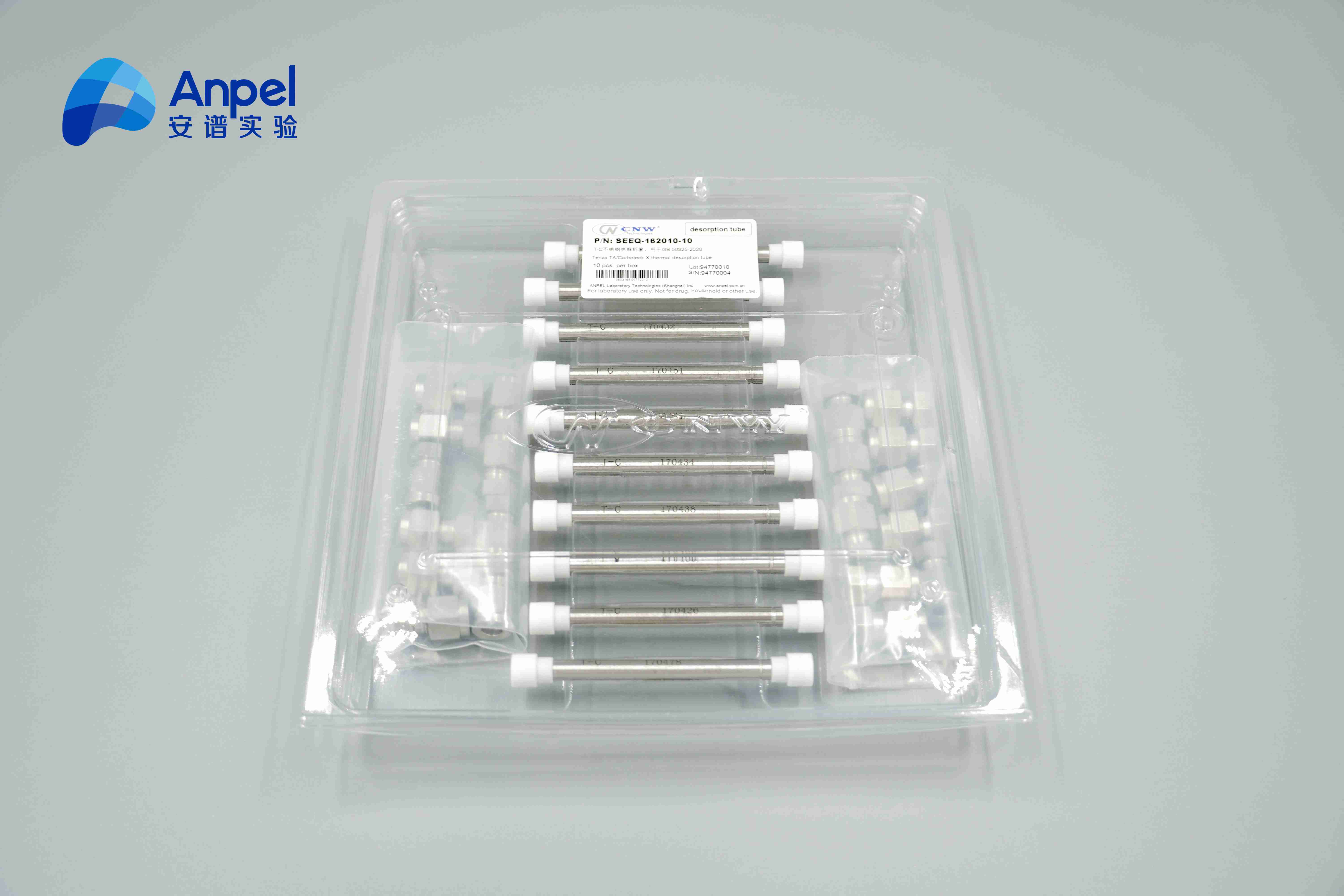 填料:Tenax GR/Carbograph 1 60/80 尺寸:1/4“*3.5 适配仪器:适配老式Markes(比6.35mm粗一些) 存储接头:简易接头 包装:10支热解析管 ,吸塑盒包装 含 PTFE简易接头SEEQ-DN0006, 背压: 5-20Kpa , 500ml/min流速下测得